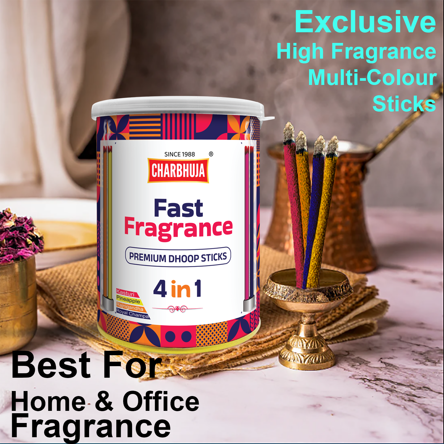 At Charbhuja, we’re not just a name. We’ve been a well-known brand in Rajasthan since 1988. We create and sell incenses, and we’re passionate about providing the best fragrances to meet the growing demand.
